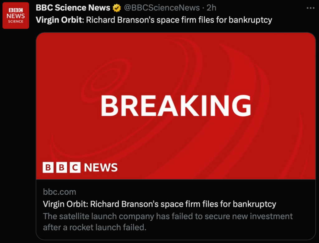 Podľa slov generálneho riaditeľa, Dana Harta, spoločnosť vykonala všetky možné kroky na zvrátenie tejto situácie a zabezpečenie financovania dlhu, no tie sa v konečnom dôsledku ukázali ako neúspešné a tak musia urobiť to, čo je podľa nich racionálne a správne. Agentúra Reuters zverejnila bilančné dáta firmy ku 30. septembru, ktoré vykazujú aktíva v hodnote približne 243 miliónov dolárov a jej celkový dlh 153,5 milióna dolárov. Nadväzujúc na tieto správy, Virigin Orbit dodal, že sa budú snažiť nájsť potencionálneho kupca v najkratšom možnom čase.