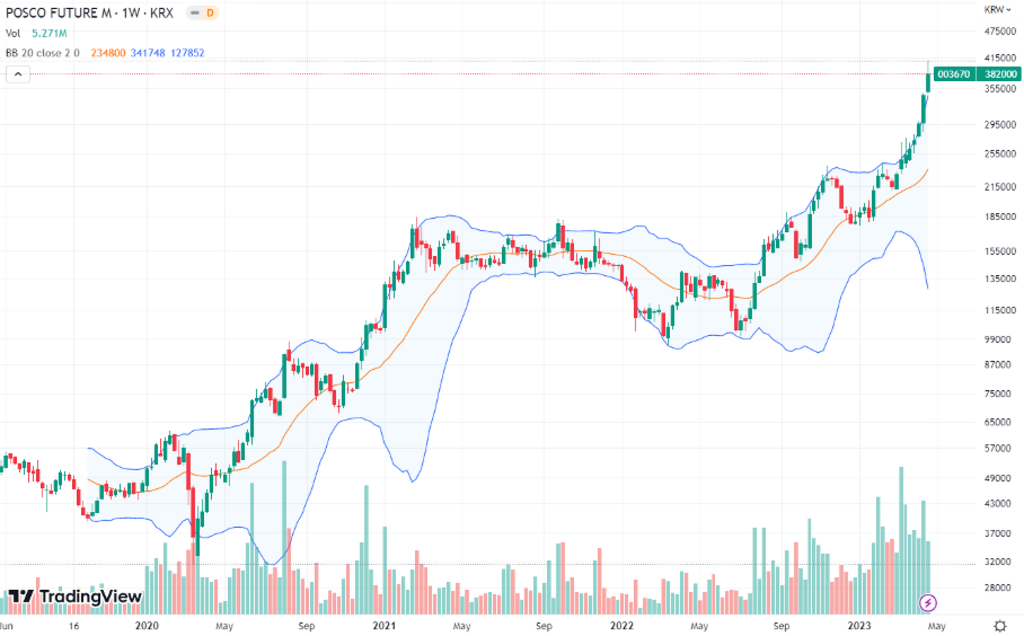 Výkonnost společnosti POSCO FUTURE M. od vstupu na korejskou burzu. Zdroj: tradingview.com