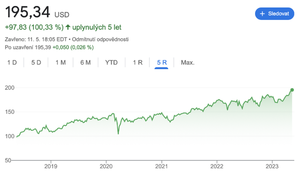 Výkonnost akcií McDonald's za posledních pět let (Zdroj: Google) *