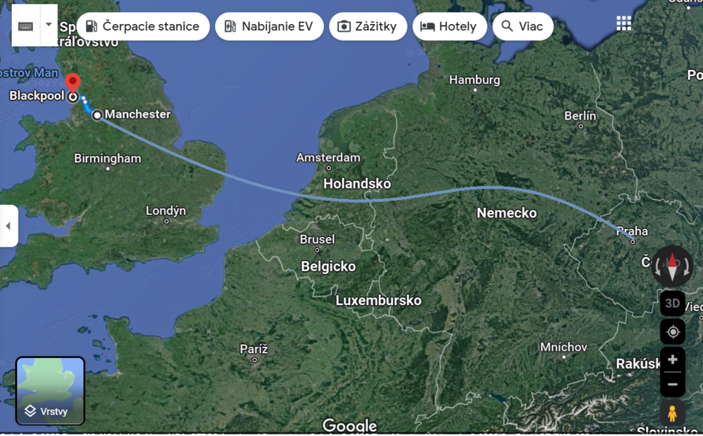 S Pauline sme sa privítali v hotelovej lobby, v katedrále pred hotelom na námestí Saint Peter Square práve odbíjali zvony poludnie. Batožinu sme si odložili k Pauline do izby, dovolila nám osprchovať sa a išli sme sa spolu dole do reštaurácie najesť. Paulin s posádkou odlieta zajtra poobede nazad do Paríža, tak nás chcela povodiť po meste. Ale my sme mali iné plány, aj sme jej ich pri obede prezradili. Pauline to nadchlo, bola nabudená z tangového večera spred pár dní, tak nás poprosila, či by sme ju nezobrali so sebou do Blackpoolu. Do noci sme späť, je to nejakých osemdesiat kilometrov ďaleko, vlakom slabá hodinka. Slovo dalo slovo a po poobednej káve sme zašli na blízku vlakovú stanicu. Batožinu sme so sebou nebrali, ale prezieravo sme sa do slušného večerného casual black prezliekli už na hotelovej izbe, veď ani do divadla sa neprezliekate až na divadelnej toalete, ale tam idete nahodení už z domu. Len sálové topánky a nejaký necesser sme si niesli so sebou v taške. Pre istotu. A dobre sme urobili.
