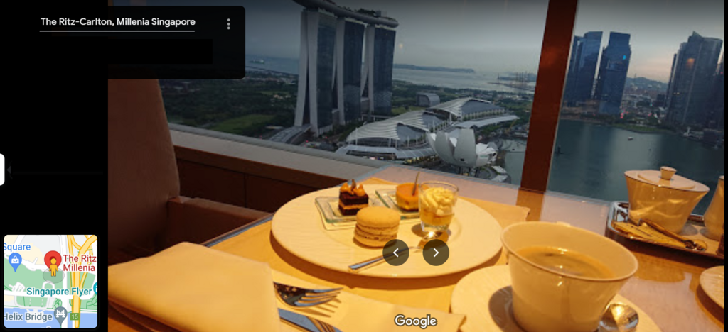 Po štvorhodinovom rannom lete som doletel do Singapuru, taxíkom som sa odviezol do skvelého hotela Ritz Carlton Millenia v zátoke Marina Bay a po registrácii na recepcii a vypočutí si úvodnej konverzácie: ste v Singapure prvý krát...? reštaurácia je na roof top, raňajky sú od... po náročnom lete som si oblečený ľahol na posteľ, zmožený cestou, aj tou vysokou vlhkosťou vzduchu, lebo čím viac sa blížite k rovníku, tým je vyššia. Zadriemal som, zobudil som sa až poobede. Časový posun oproti Hongkongu tu nie je veľký, v Bratislave by som mal väčšie problémy vstať. Tak som sa iba osprchoval, prezliekol a vyviezol sa hore do reštaurácie na najvyššie poschodie. Na takú obedovečeru.