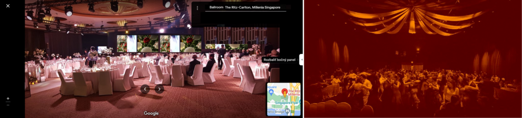 Dopili sme, ja som sa odišiel nahodiť do gala do svojho hotela a za hodinu ma moje dve dámy čakali v taxíku pred hotelom. Prišli nahodené štýlovo, v dlhých voľných šatách, tak letne, ako pravé letné ženy. V zime je tu v Singapure veľmi príjemne, do apríla je tu obdobie sucha a teploty sa pohybujú okolo 26°C. Ideálne na večernú zábavu.