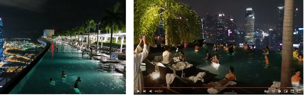 Tam som zaplatil dosť vysoké vstupné za vstup na roof top a o hodinu som už sedel v bare na terase pri bazéne Infinity. Musím povedať, že ten bazén sám o sebe nejaká veľká sláva nie je. Má taký surový vykachličkovaný vodný prepad, oddeľujúci ho od zábradlia, ktoré už sem-tam začínajú korodovať, čo je ale pochopiteľné, veď je tu extrémne vlhko a slaný morský vzduch tiež spraví svoje. Ale ten výhľad stojí fakt za to. I tie ohurujúce selfie, ak sa správne našteľujete.