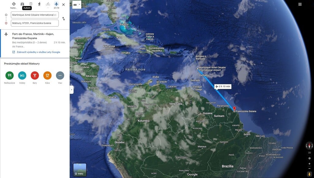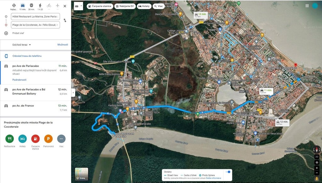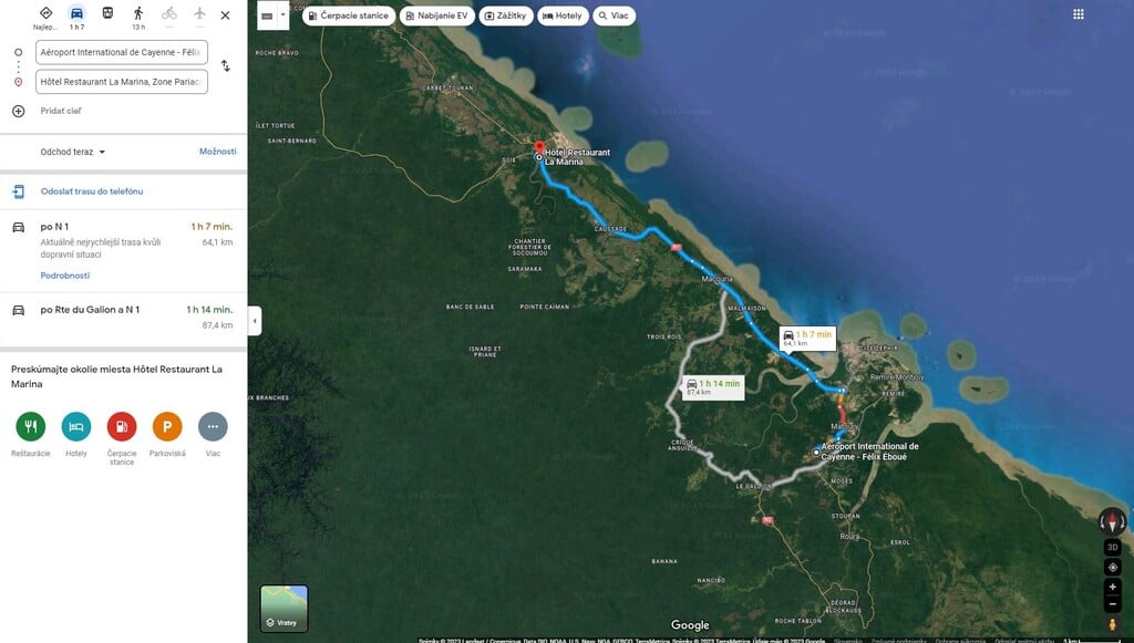 Po týždňovom pobyte u priateľov na Martiniku sme sa rozlúčili, dohodnúc sa na ďalších termínoch mojej Gala milongy Piatoque, keď sa vrátia do Štrasburgu a rozhodli sme sa zaletieť na Francúzsku Guyanu, len tak si na pár dní zaspomínať s kamarátmi, čo tu ešte slúžia v Kourou. Prileteli sme doobednou linkou do Cayenne, kde sme si požičali auto. Nechceli sme byť odkázaní na taxíky a na miestnu dopravu v tomto vlhku už vôbec nie. V letiskovej požičovni sme si zaobstarali jedno veľmi praktické auto, na miestne cesty ako stvorené. Všetci francúzski policajti na celom svete na ňom v posledných rokoch jazdia. Aj vo filmoch. Tak sme sa našou novou známou - Daciou Duster odviezli do hotela. Nie však do hlavného mesta departmentu Cayenne, ale do severnejšieho, šesťdesiat kilometrov vzdialeného Kourou. Lebo veď... chcel som navštíviť starých kamarátov a nie trčať na mestskej pláži.