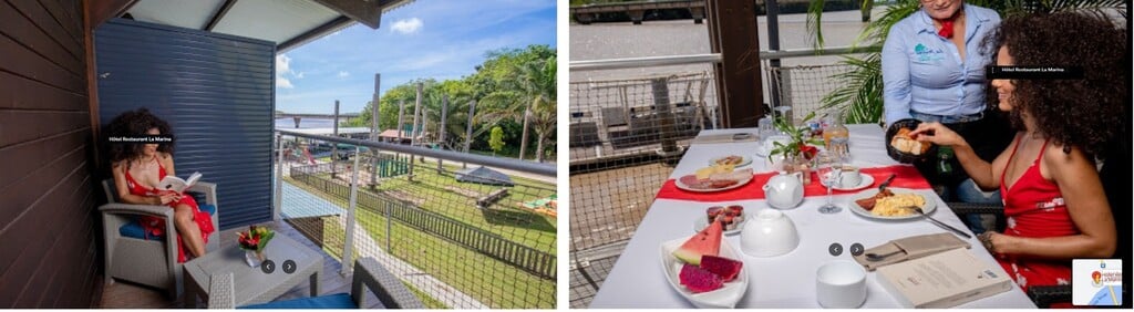 Hotel La Marina v Kourou nám vyhovoval, má výbornú rybiu reštauráciu, keďže sa nachádza priamo pri rovnomennej rieke. Veď i ten názov tomu napovedá.