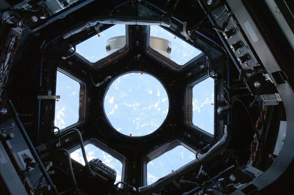Ostali sme ako obarení... pred nami je ďalšia miestnosť- kopula s panoramatickým oknom. Vplávame dnu - úžasná ilúzia. Pridŕžame sa steny, pozerajúc cez vypuklé okno ako na miniponorke - všade naokolo vesmír a iné pripojené moduly ISS.