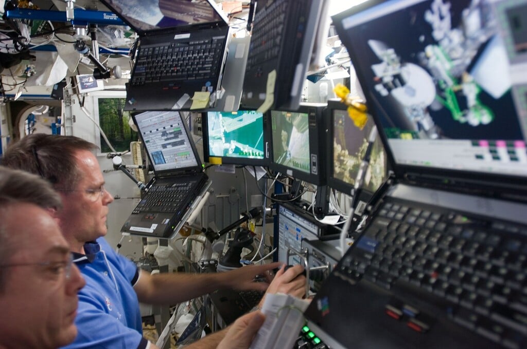 So vzrušeným buchotom srdca až niekde v krku sme doslova zízali na ten vesmír okolo seba. Pod sebou sme videli pomaly sa otáčajúcu zemeguľu, okolo seba všetky tie moduly ISS, pospájané do seba ako obrovské vesmírne lego, kozmonautov vysúvajúcich teleskopické rameno z pripojeného raketoplánu a toto všetko je SKUTOČNÉ!!!