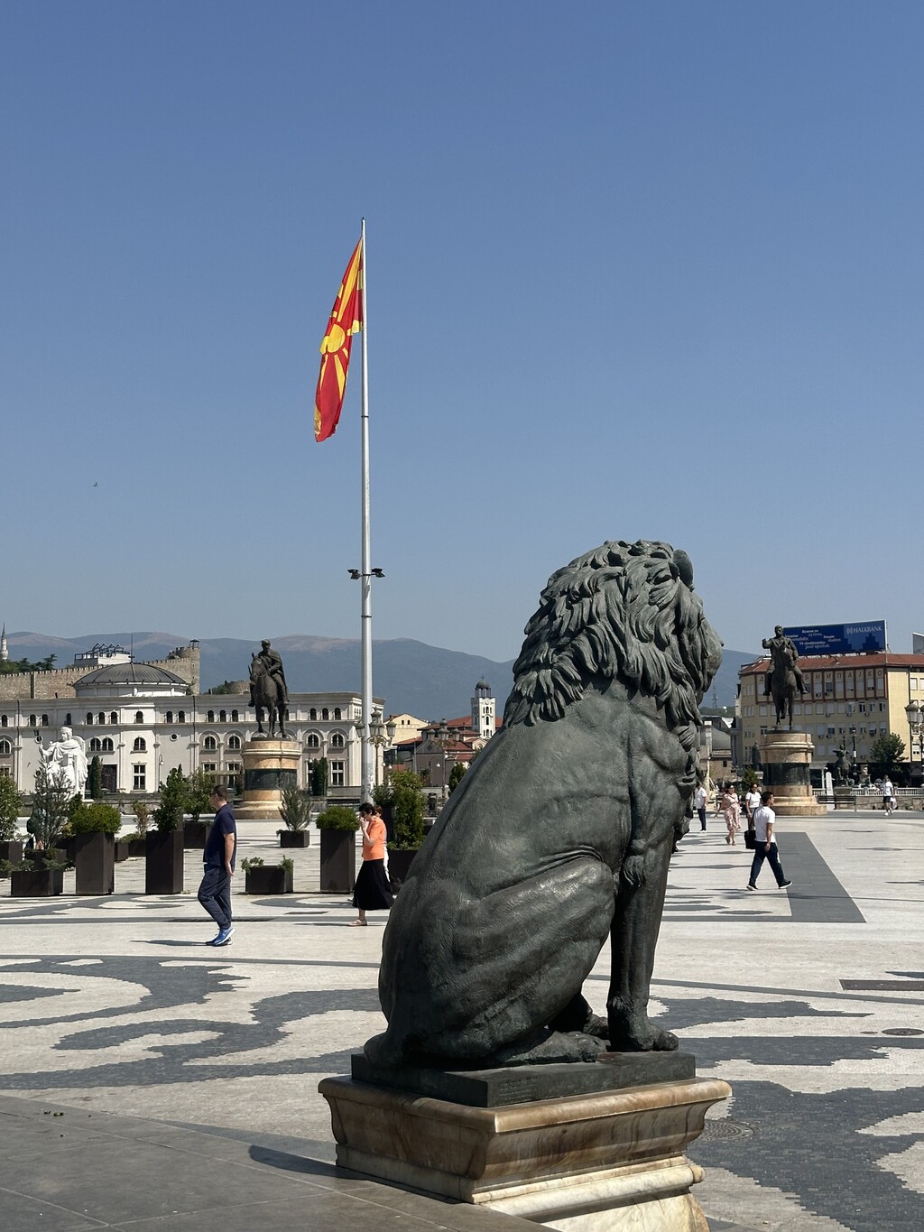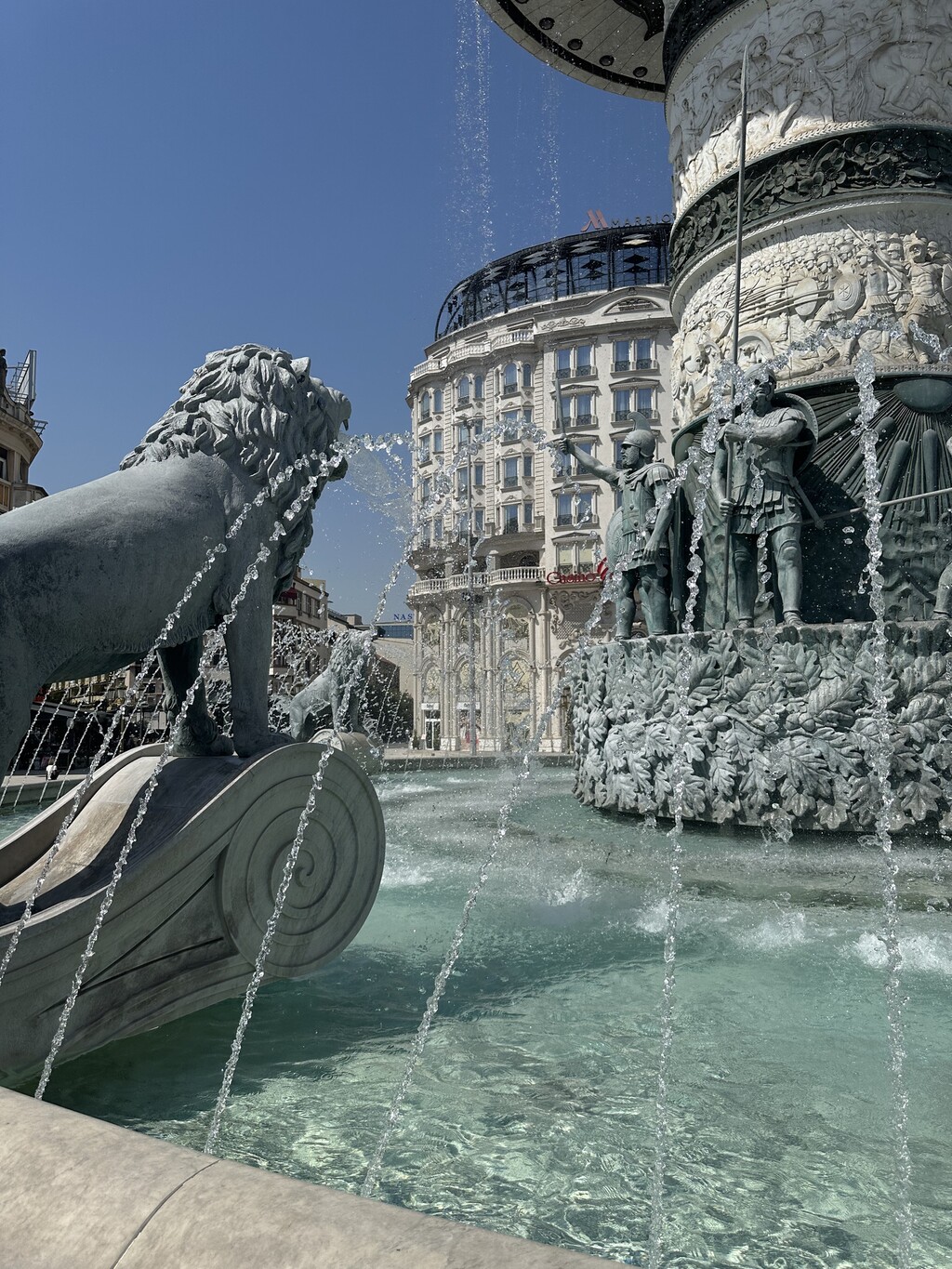 A kedže som nabrala energiu, ktorú som potrebovala, moje ďalšie kroky smerujú už do mesta. Prechádzam okolo socialisticky vyzerajúcich bytoviek a v uliciach stretávam túlavých psov. Ako prvá pamiatka ma privíta Macedónska brána, ktorá je bránou do centra mesta. O pár krokov ďalej už vidím slávne Macedónske námestie pozostávajúce z obrovskej fontány a mohutných sôch. V Skopje je nezvyčajne veľa sôch, čo má svoj dôvod. Mesto si v roku 1963 prešlo obrovským zemetrasením, čo malo dopad na architektúru mesta. Mesto preto prišlo s projektom, ktorý mal dodať mestu viac národný a historický vzhľad, na základe čoho boli postavené tieto sochy.