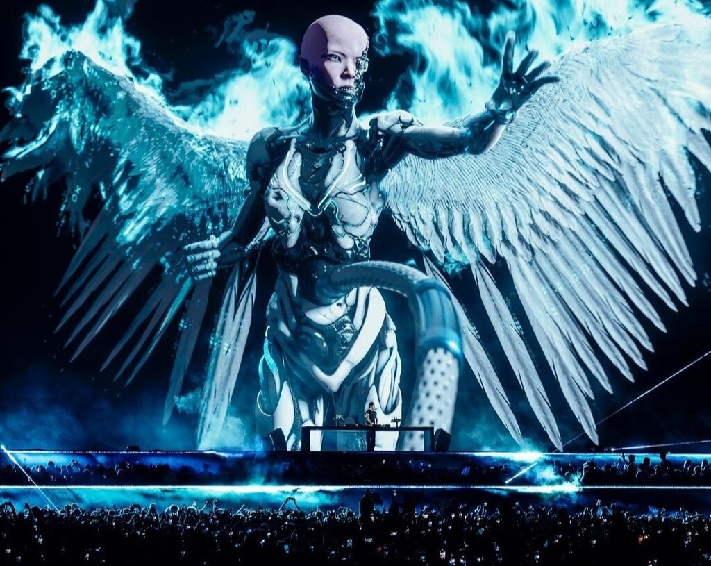 A čo vizuály? Uznávam, že naživo sú BRUTÁLNE! Môj osobný highlight bol vizuál sirény pri tracku Syren, no úplne ma odpálil ,,polorobot” meniaci sa na ohnivého anjela počas Simulation. Ten WAU efekt pri premene horiacich krídel bol next level!