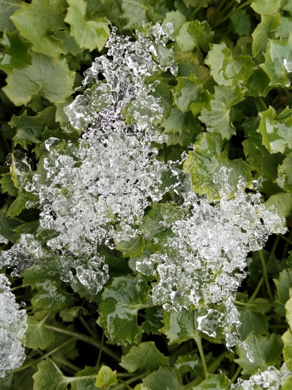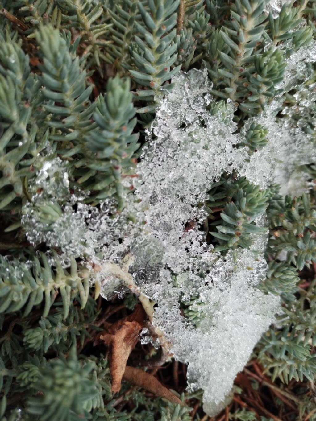 V neděli ráno pozůstatky sněhu a ledu na trávníku. Prolínají se se skalničkami, též s květenou ve Zlíně. Již uvedené obrázky nám dávají najevo, že se blíží prosincové období, a to ještě chladnější.