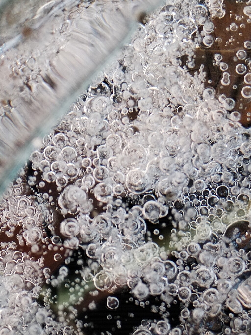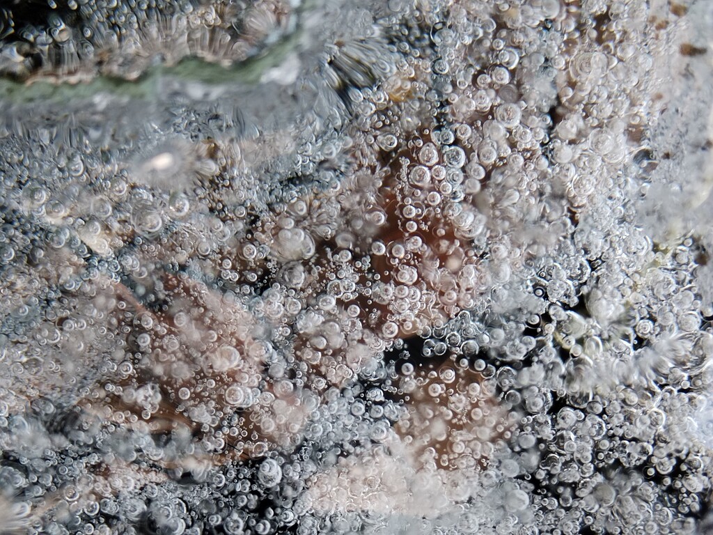 Kompozice tání ledu v zahradním barelu připomíná vesmírné světy planet a měsíců. Mnohdy jsou nehostinné, ale člověk nikdy neví ohledně zárodků života.