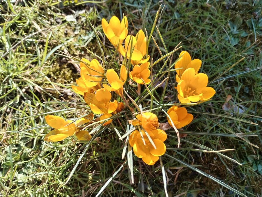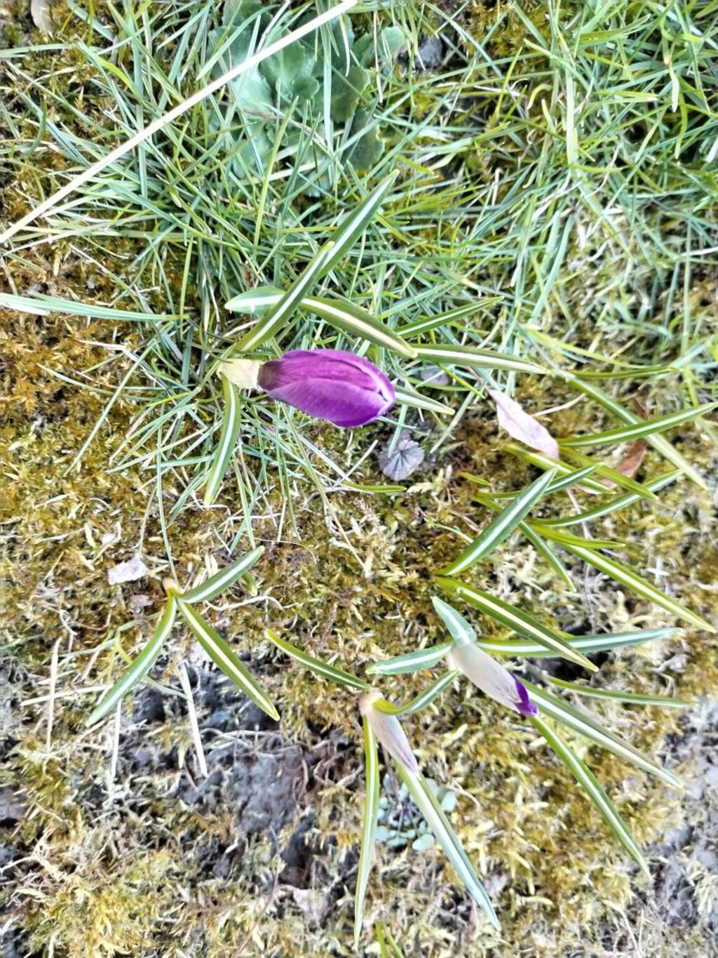Slunce svítilo, ale bylo pocitově mrazivo. Krokusy se celkem drží, ale některé nám už odkvétají, jiné zas vylézají.