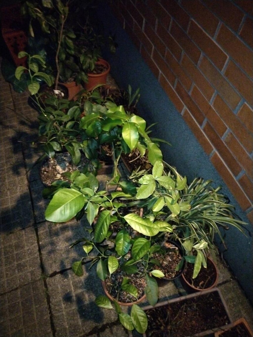 Fotka vypadá tajemně, jako bychom se ocitali v půlnoční pohádce. Dávat rostliny před fasádou má své přednosti, neboť jsou zásobeny též z tepla, jež putuje z interiéru. A tak jsem rád, že je mohu letnit u nás doma na zahrádce.