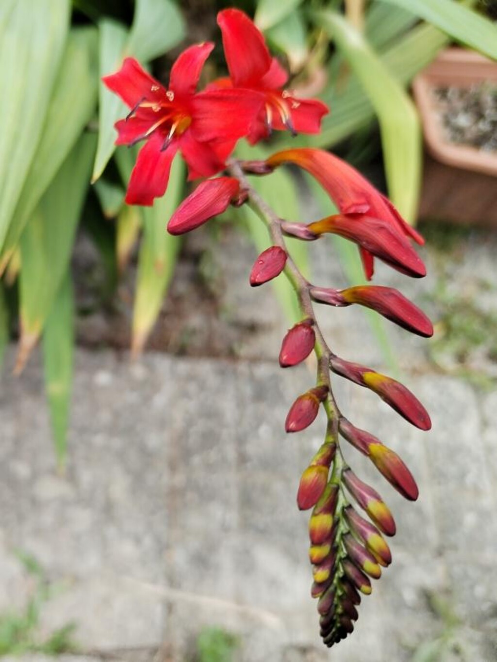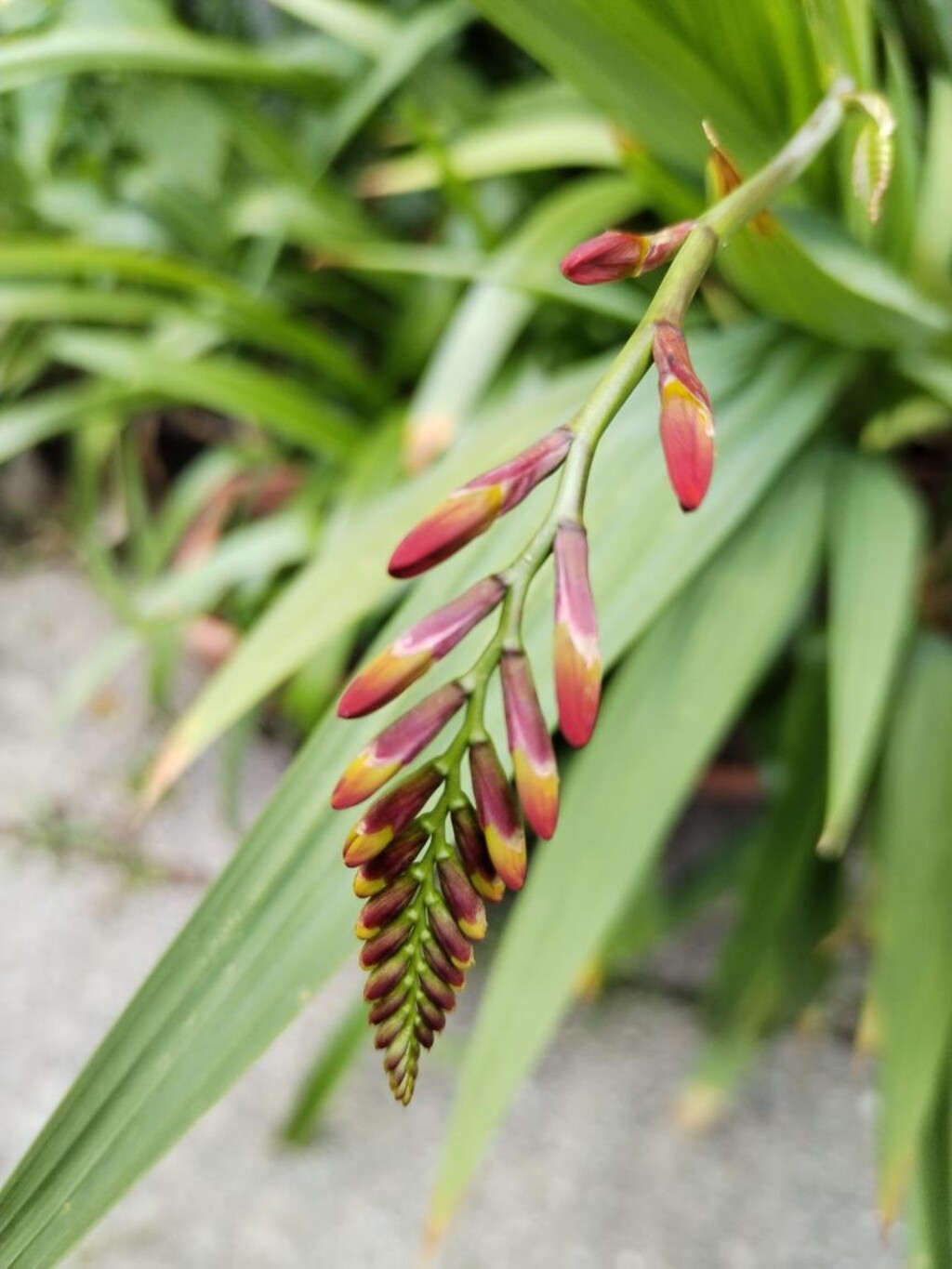 Večer jsem se vydal na zahrádku, abych ještě více zdokumentoval kvetoucí montbrécii, co se týče červené barvy květu.