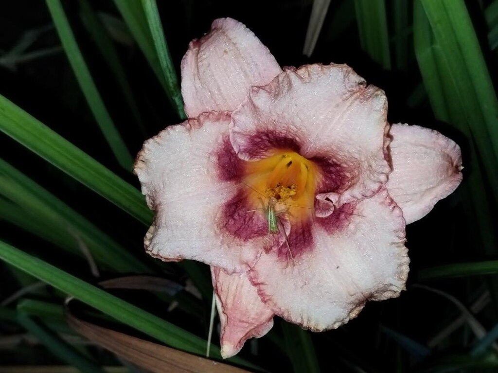 Na jedné denivce přebývá kobylka. Kobylku zelenou jsem spatřil na dalších exotických cibulovinách, nedávno na agapantu, též dříve na knifólii.