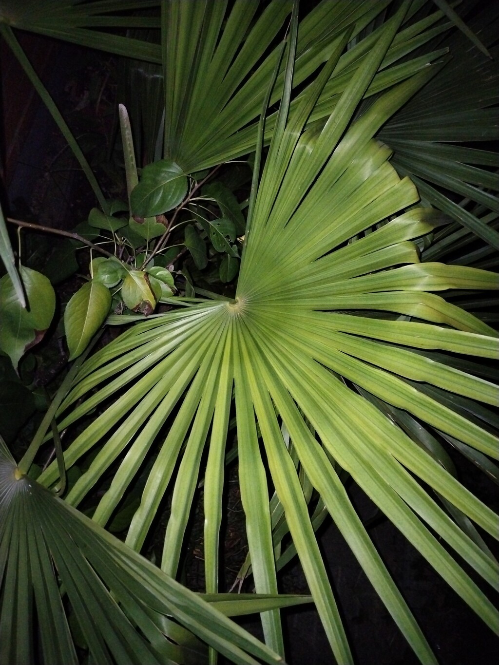 Trachycarpus fortunei v noci na zahrádce