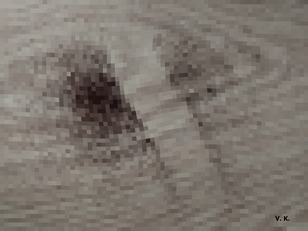 Trochu se mi rozsypala káva. Drobný poprašek skončil na podlaze. A já jsem asi po pěti minutách vyfotil uvedený úkaz v baťovském půldomku, upravil pak v počítači. Vznikla mi tedy kávová houbička.