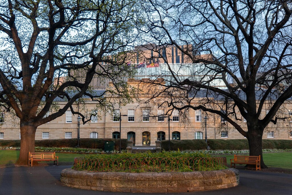 Zdroj obrázka: https://www.pexels.com/sk-sk/photo/sudna-budova-v-hobarte-s-jesennymi-stromami-pri-vychode-slnka-33899451/