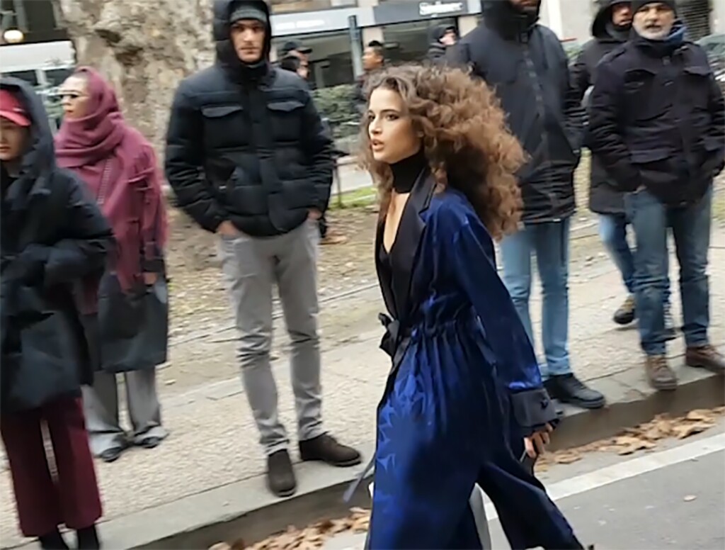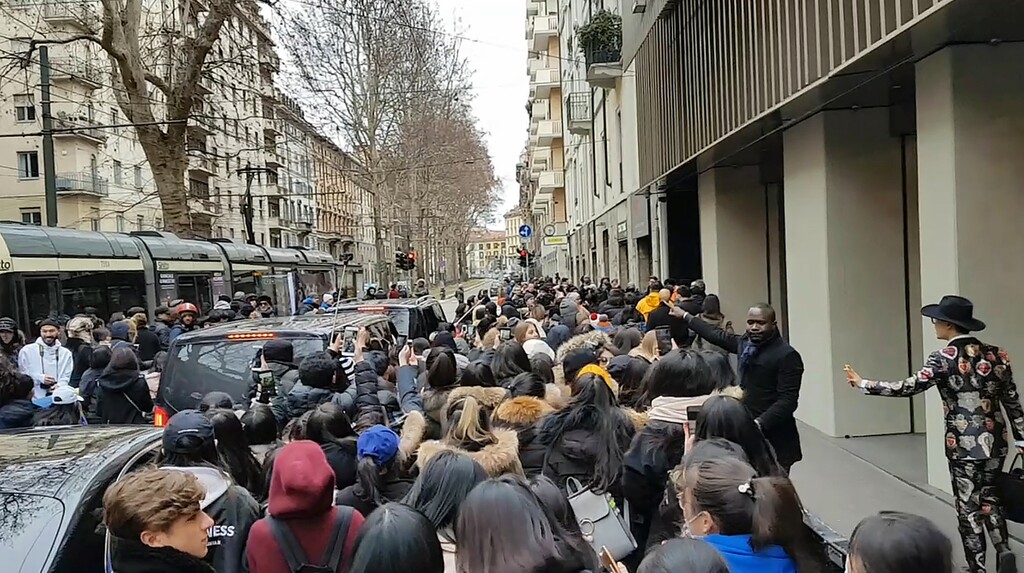 Príchod troch očakávaných celebrít medzi nadšených skandujúcich fanúšikov spôsobil na ulici Viale Piave v Miláne davové šialenstvo. Rozvášnený dav s mobilmi a transparentami bežal s cieľom zachytiť čo najlepší moment a takmer zmiatol so sebou aj prítomných policajtov. Vtipné video nájdete na instagrame: mya_mirell a facebook stránke Mya Mirell Fashionista a youtube kanáli mya mirell.