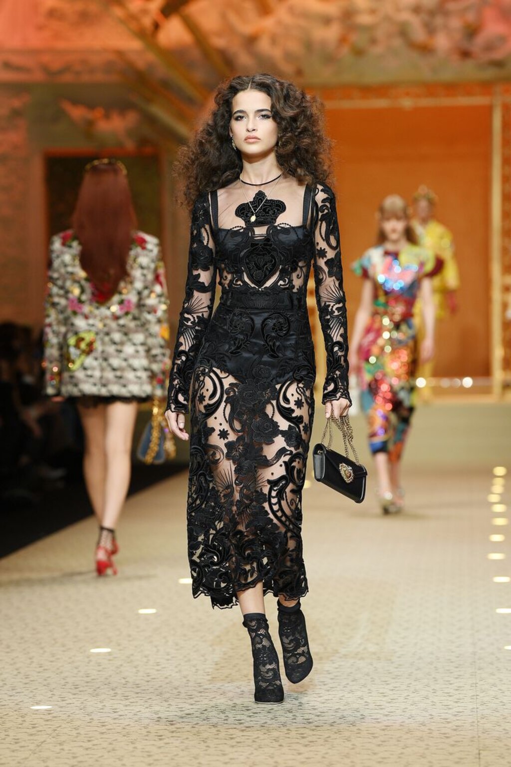 Značka Dolce and Gabbana otvorila brány módneho neba unikátnym a šokujúcim spôsobom. Prehliadka začala úplne netradične a prítomných divákov ohromila. Načasovanie vyšlo s miernym oneskorením, čo nebýva nezvyčajné, avšak tu sa čakalo na vypnutie všetkých wifi sietí. Dôvod bol hneď za dverami, ktoré evokovali božskú bránu a kostolné spevy vítali prítomných hostí. Ako zaznel zvon, dvere sa otvorili a do priestoru „sa vzniesli kabelky“. Bol to zaujímavý okamih, ktorý reprezentuje túto dobu, dobu technického pokroku a napredovania.