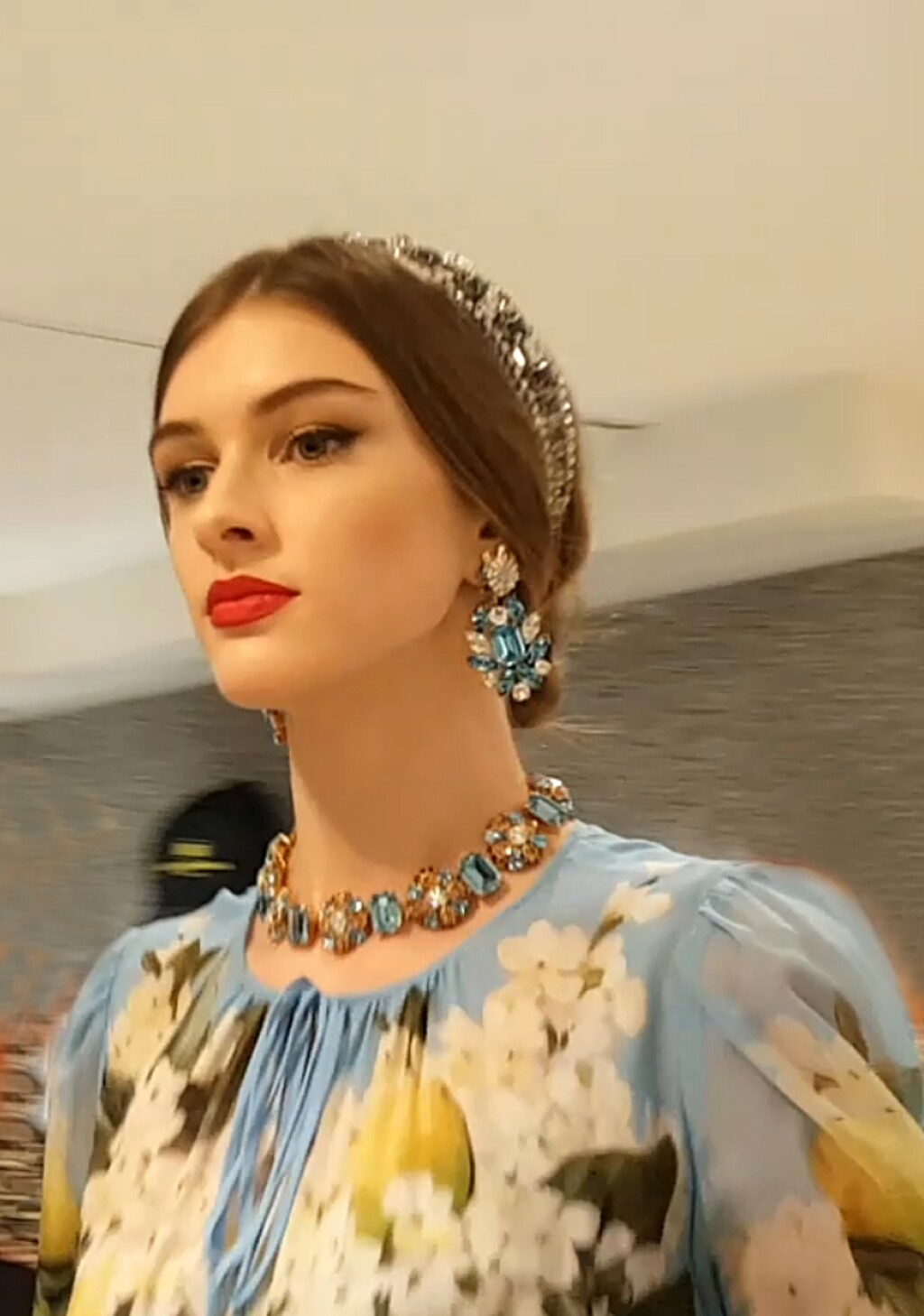 Fantastická myšlienka, s ktorou prišlo duo Dolce and Gabbana, no už sa len natíska otázka: „Nenahradia roboty časom aj samotné modelky?“ Na minuloročnej prehliadke návrhárske duo obsadilo do rolí modelov a modeliek bežných ľudí – influencerov, bloggerov, ľudí zo sveta (čítaj v článku Dolce and Gabbana, Milan Fashion Week – 26. február 2017 na blogu myamirell.eu ), avšak tentokrát šokovalo viac. Našťastie po úvodnej časti prehliadky v podobe techniky sa opäť vrátili k svojím krásnym modelkám, ktoré predviedli očarujúce modely pre sezónu jeseň/zima 2018/19.