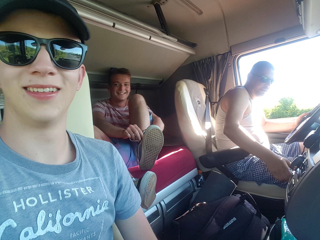 Aj tak sa však našiel ochotný človek, ktorý nám zastavil. Hneď za ním síce zastavila Polícia, ale vysvetlili sme im, že stopujeme a po upozornení nás pustili ďalej. V aute sedel asi 30 ročný muž, ktorý nás zaviezol asi 10km od hraníc s Nemeckom na odpočívadlo. Tiež to bol policajt, ktorý šiel mimo služby na návštevu. Z odpočívadla sme šli dvoma kamiónmi.