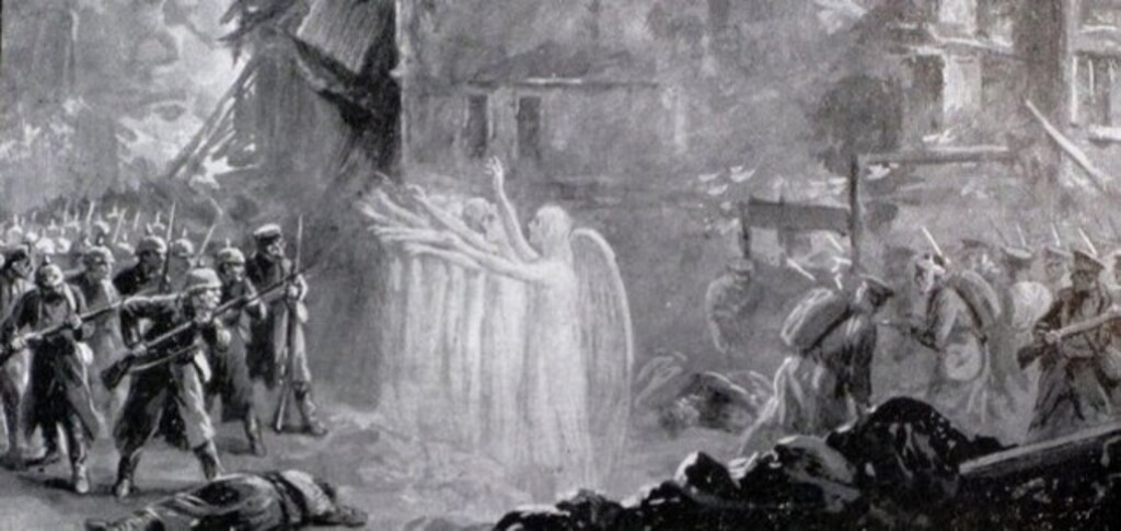 Populárna legenda hovorí o skupine anjelov, ktorí údajne chránili členov britskej armády v bitke pri Monse na začiatku I. svetovej vojny. V apríli 1915 bol v britskom časopise pre špiritistov zverejnený článok, ktorý popisuje vízie vojakov. Podľa nich nadprirodzené sily zasiahli v rozhodujúcom okamihu bitky, a tak im pomohli. Išlo vraj o akýsi svetelný oblak, ale najrozšírenejšia verzia sa prikláňa k anjelským bojovníkom. Opisy sú veľmi podobné detailom z poviedky Arthura Machena, ktorá uzrela svetlo sveta v denníku Evening Post v septembri 1914.