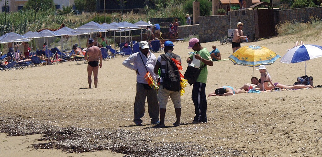 Jdete po pláži plné plastových lehátek se slunečníky, na kterých se povalují plnoštíhlí turisté z Německa a Ruska, a hledáte volný flek, kde byste zapíchli svůj slunečník z Lídlu a pod něj si rozbalili svou rákosovou podložku. Přitom na vás stále útočí naháněči: "Hello, jak se máte, odkud jste, mám tady dvě lehátka se slunečníkem za 10 euro za den, 30 euro na pět dní!". Jenže my zarputile odmítáme. Dokud nenarazíme na opáleného tajrlíka v šortkách ve španělských barvách. Ten je opravdu zarputilý: "Oukej, tak 20 euro na pět dní!". Stále odmítáme. Pak z něho vypadne: "Oukej, oukej, tak speciální cena pro vás, 6 euro na tři dny!". No neberte to.