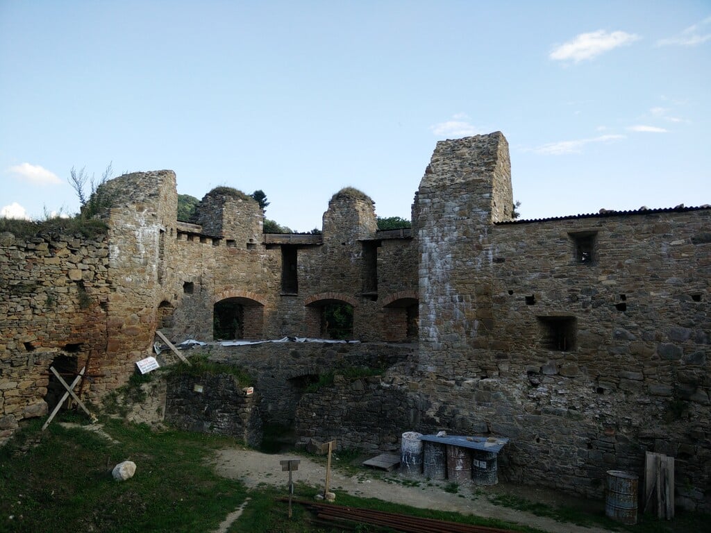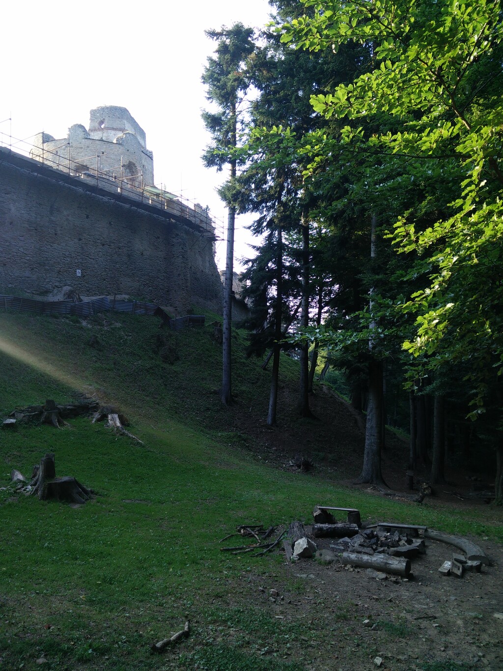 Prichádzame teda k hradu. Hneď je vidno, že na obnove sa usilovne pracuje, a to ma len a len teší. Pred hradom je aj miesto na opekanie, čiže piknik s deťmi nie je problém.