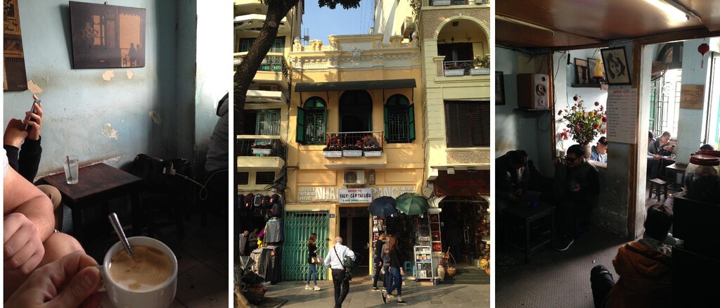 Majiteľka Dinh Coffee, pani Bich, je dcérou pána Gianga, takže káva má ešte stále pôvodnú receptúru. Menší upgrade možno je to, že dnes pridáva aj kakao, ktoré zohreje a šľahá s vajcom. Kaviareň je skoro vždy plna domácich, ale pri dobrom počasí odporúčam vychutnať si šálku kávy z balkóna a obdivovať krásu neďalekého jazera Hoan Kiem.