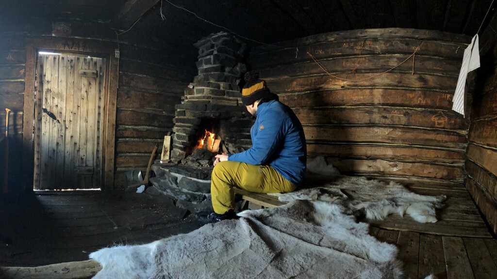 Odpoledne příjíždíme do místa Hannukuru, kde je postavená i sauna! Neváháme, hned kamna fedrujeme dřevem ať to pořádně pálí a dáváme nabít drona na solární panel.