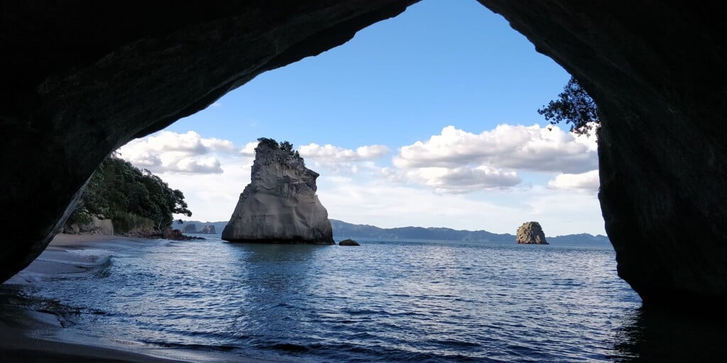 Turistika vedúca k pláži s rôznymi kamennými útvarmi. Parkovanie v najbližšom meste je obmedzené, keďže je to miesto turisticky dosť navštevované. Miestny vytvorili parkovisko, na ktorom sa dá zaparkovať a odtiaľ ísť shuttlom alebo peši ku Cathedral Cove. My sme prišli príliš neskoro a parkovisko už zatvárali, ale nedali sme sa odstrašiť a namierili sme si to do mesta. Tu sme parkovanie našli a pešo sme šli na Cathedral Cove.